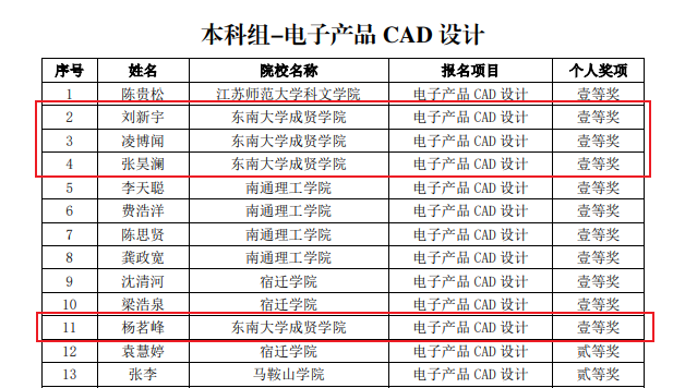 第十二届华东区大学生CAD应用技能竞赛由于防疫要求于2022年5月14日在线上举行,我院19级电子科学与技术专业的刘新宇、20级电子科学与技术专业的凌博闻和20级电子信息工程专业的杨茗峰、张昊澜、雷以轩同学参加了本次竞赛,获得了个人赛四个一等奖、团体赛二等奖的优异成绩。